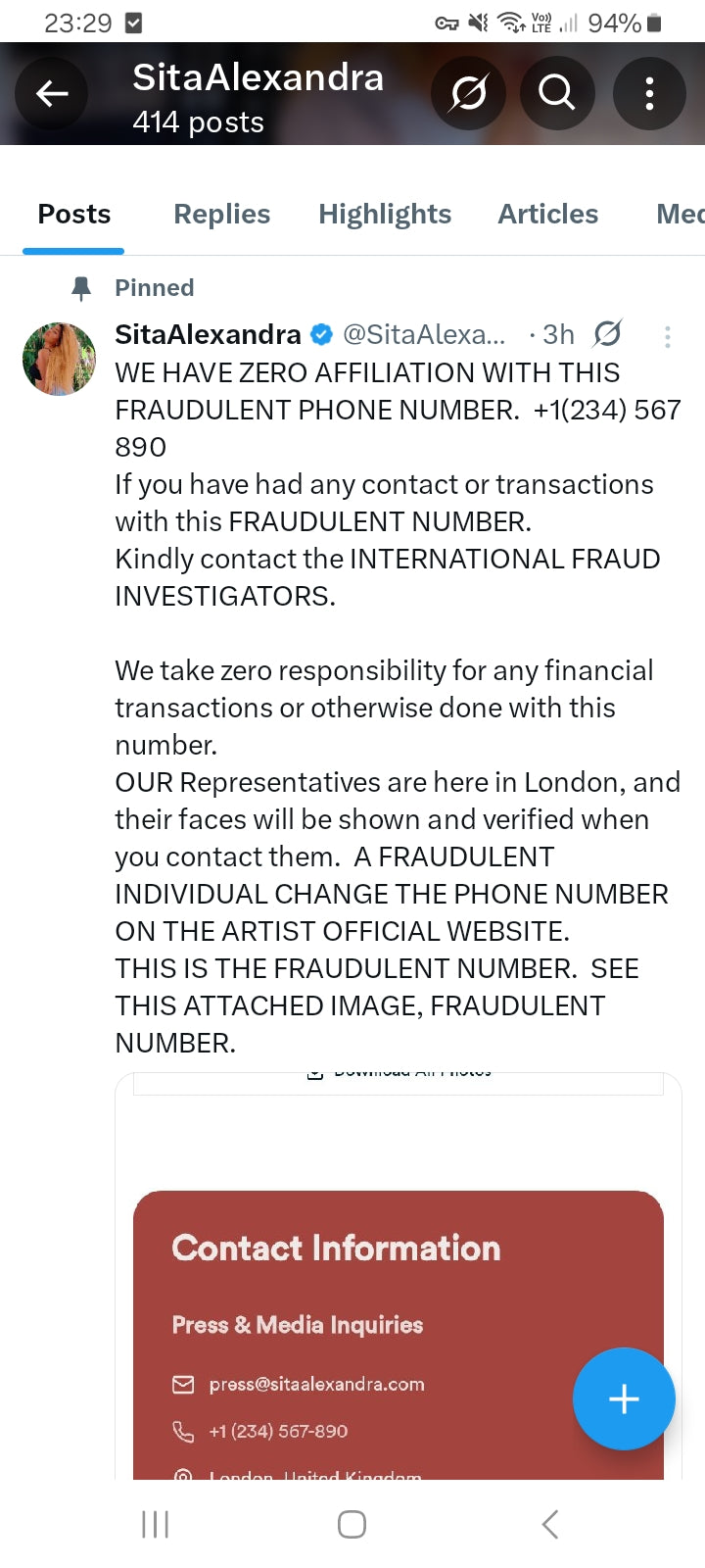 Team faces on Artist Official Twitter page , so Kindly verify who you are speaking with.